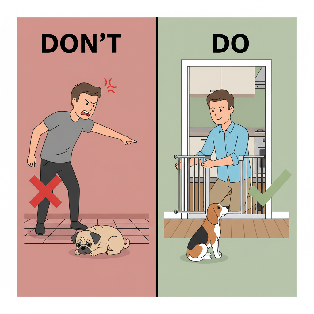 Never punish your dog for trash raiding. Instead, calmly clean up the mess without interacting with your dog, and then reassess your management plan to determine how they gained access. The failure was in the prevention, not in the dog’s behavior.