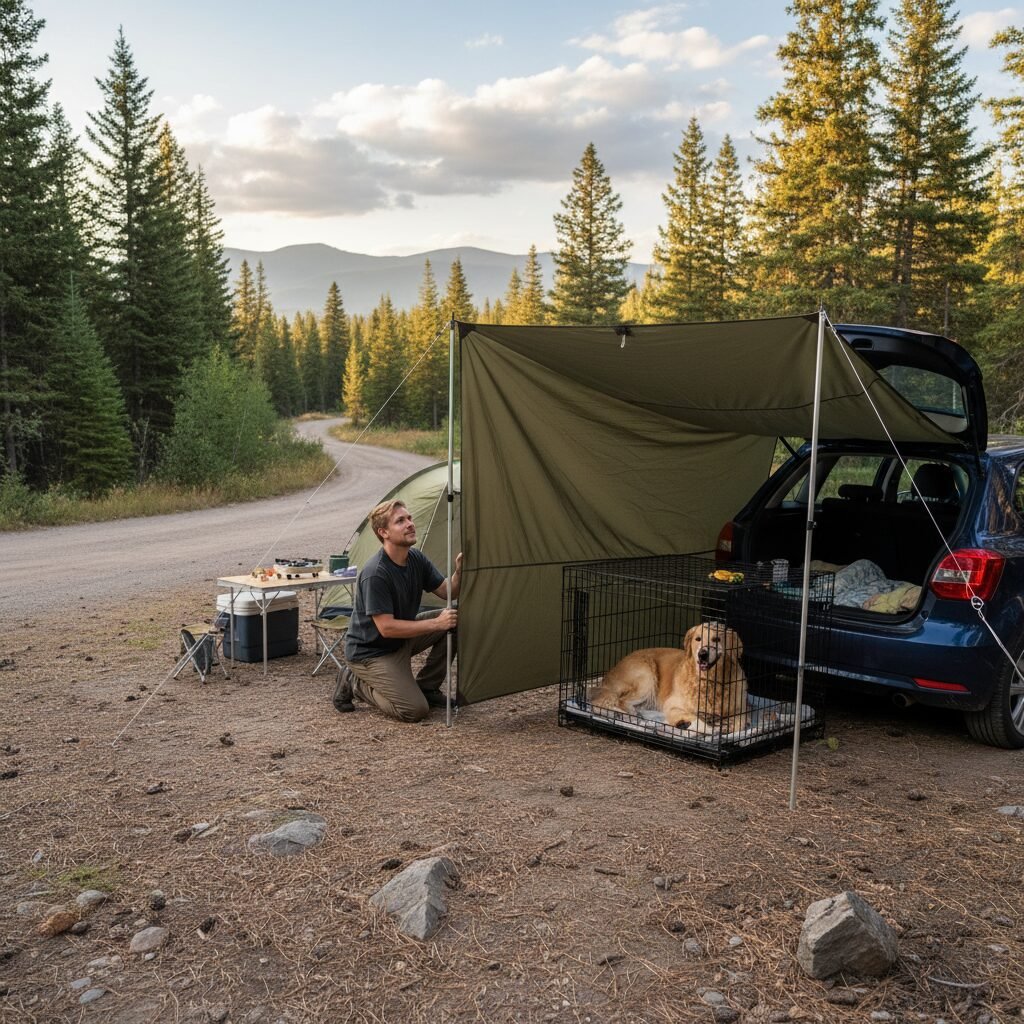 3. Set Up Barriers Immediately: Before you do anything else, set up your visual barriers. Use tarps or screens to block the view of the camp road or any adjacent sites. You are creating a ‘bubble’ of safety for your dog.