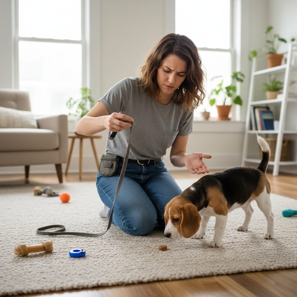| The verbal cue “Leave It” doesn’t seem to work. | The cue has not been properly associated with the action. This happens when the cue is introduced too early, before the behavior is fluent. Solution: Stop using the verbal cue for now. Go back to Phase 3 and get the physical action of leaving the item on the floor reliable without any words. Once it’s solid, re-introduce the cue by saying it just before your dog performs the action they were going to do anyway. |