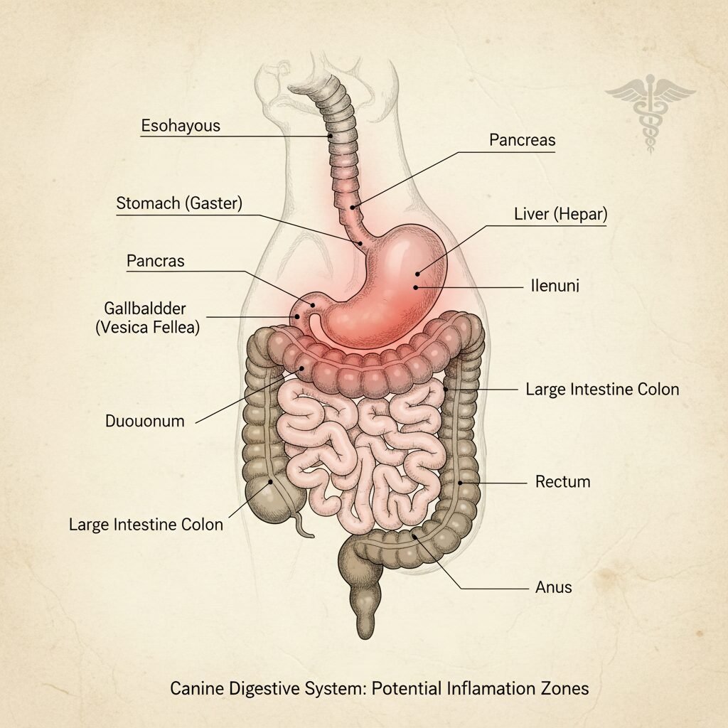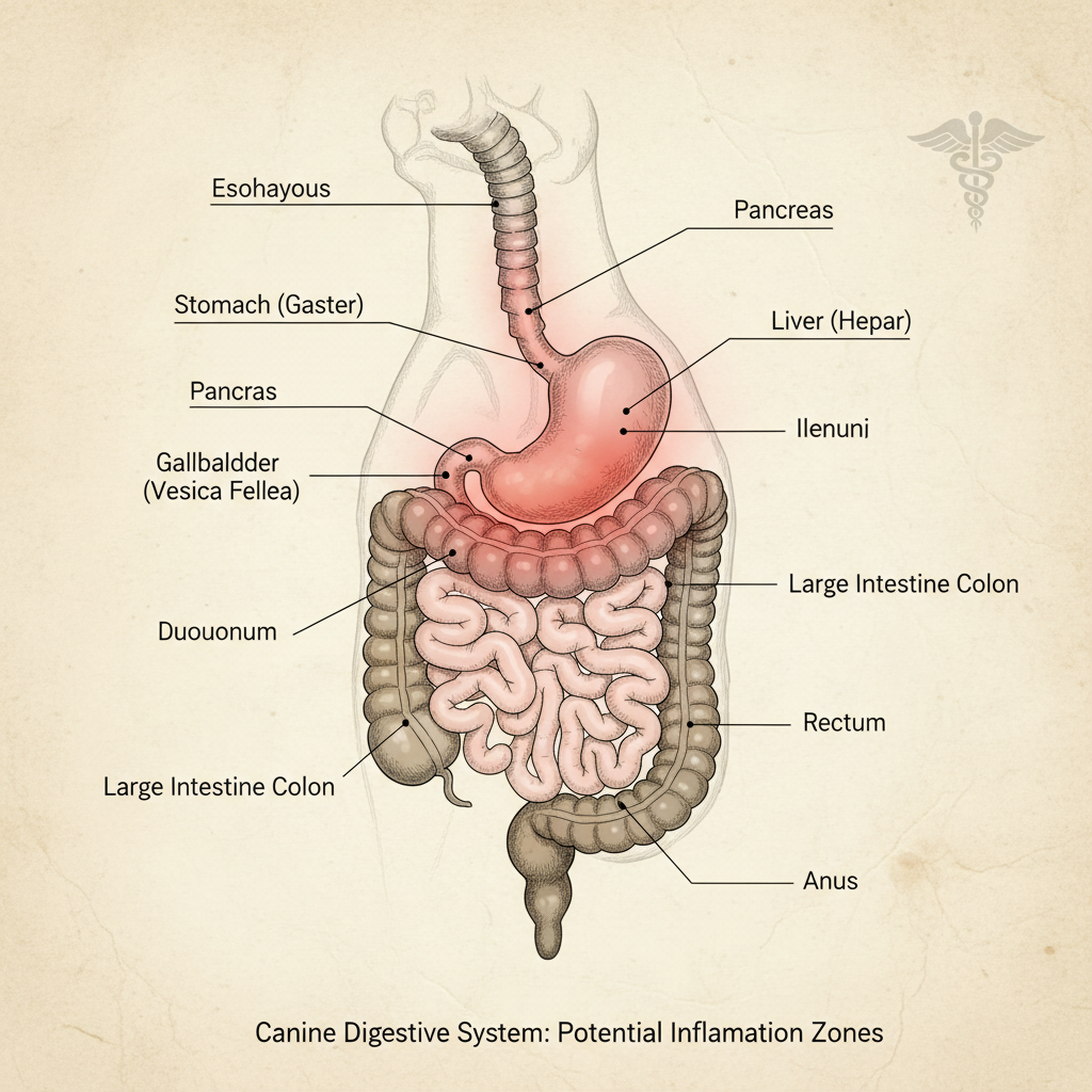 • Gastritis: Inflammation of the stomach lining, which can be caused by dietary indiscretion, infections, or other underlying diseases.