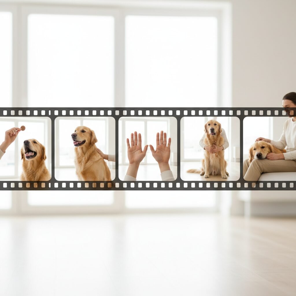 This process is called desensitization and counter-conditioning. We will slowly re-introduce the concept of being handled in a way that does not trigger fear (desensitization) and pair it with something the dog loves, like high-value treats, to change their emotional response from fear to happy anticipation (counter-conditioning). This requires patience. Do not rush the steps. If your dog shows any signs of stress (lip licking, whale eye, yawning, freezing), you have moved too fast. Go back to the previous step where they were successful and comfortable.