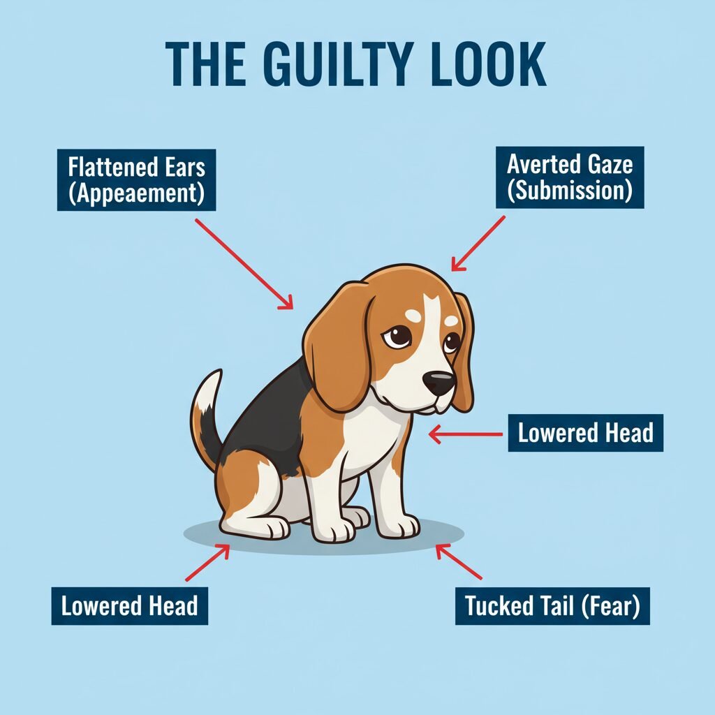 Before we can understand the motivation behind the behavior, we must first accurately identify what we are seeing. The ‘guilty look’ is not a single expression but a constellation of body language signals that are well-documented in canine ethology. Understanding these individual components is the first step in translating the dog’s true message.